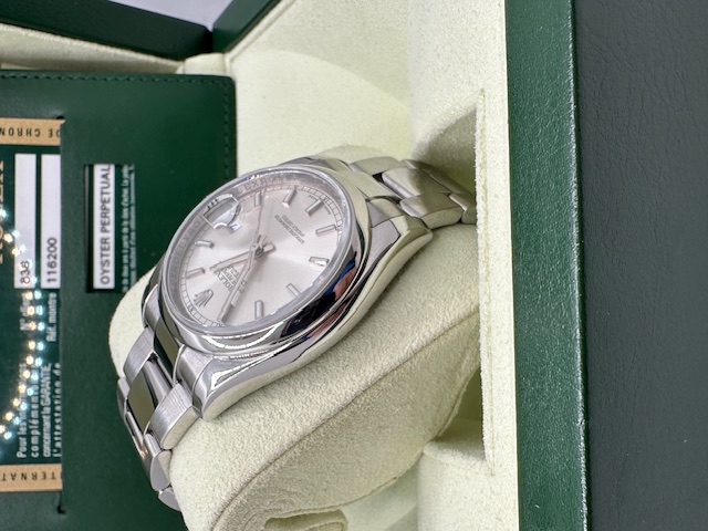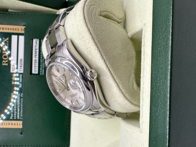 Proponiamo in vendita un Rolex Datejust Referenza 116200 anno 2011 con elegantissimo bracciale Oyster e lunetta in acciaio con un bellisismo quadrante silver in condizioni di pari nuovo.Orologio iconico di casa Rolex, ottimo per tutte le occasioni, con bracciale Oyster che lo rende accattivante ed elegante nello stesso tempo.. Viene venduto completo di scatola (NO CONTROSCATOLA), garanzia originale Rolex, più nostra garanzia 12 mesi.