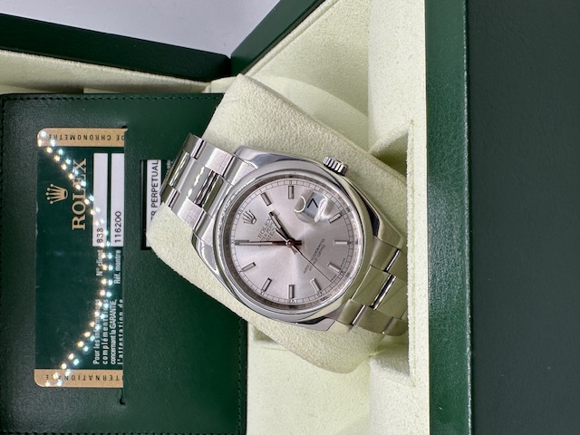 We are offering for sale a Rolex Datejust Reference 116200 year 2011 with an elegant Oyster bracelet and steel bezel with a beautiful silver dial in like new condition. Iconic Rolex watch, excellent for all occasions, with an Oyster bracelet which makes it captivating and elegant at the same time.. It is sold complete with box (NO OUTER BOX), original Rolex guarantee,plus our 12 month guarantee.