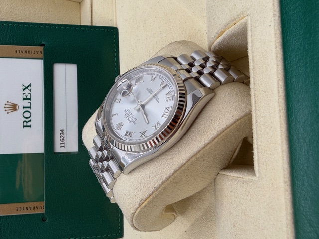 We are offering for sale a Rolex Datejust reference 116234 from 2015 in excellent condition. Iconic Rolex watch, excellent for all occasions, with a beautiful gray dial with Roman numerals and white gold bezel, which makes it captivating and elegant at the same time, also suitable for a female audience. It is sold complete with original box (NO OUTER BOX), Rolex guarantee plus our 12 month guarantee.