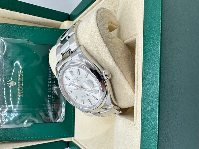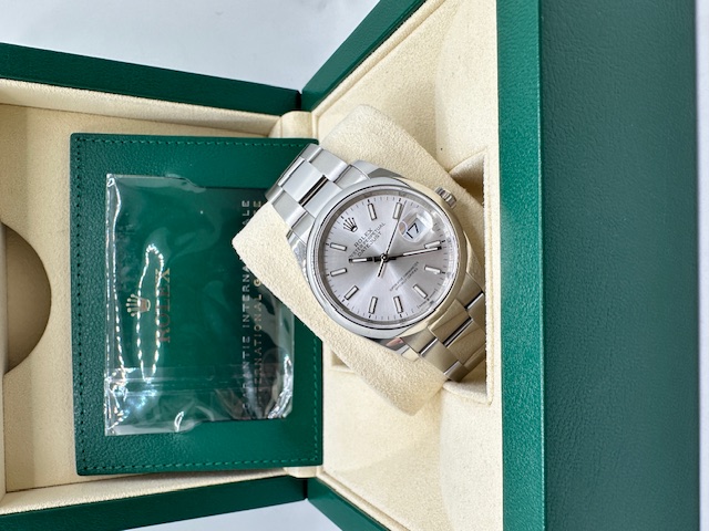 Rolex Datejust referenza 126200 Anno 2021 in condizioni eccezionali con elegantissimo quadrante silver,praticamente introvabile in qualunque concessionario Rolex del mondo. Orologio leggendario di casa rolex che permette un uso sia sportivo che elegante allo stesso tempo, completo di scatola (NO CONTROSCATOLA), garanzia originale Rolex più nostra garanzia 24 mesi.