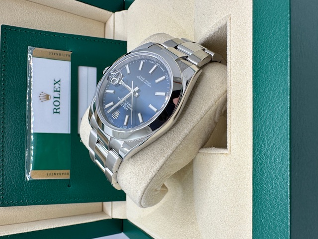 Rolex Datejust referenza 126300 con ghiera in acciaio Anno 2018 in condizioni di pari nuovo con elegantissimo e ricercatissimo quadrante Blue, praticamente introvabile in qualunque concessionario Rolex del mondo. Orologio leggendario di casa rolex che permette un uso sia sportivo che elegante allo stesso tempo, completo di scatola (NO CONTROSCATOLA) , garanzia originale Rolex,tag, più nostra garanzia 12 mesi.