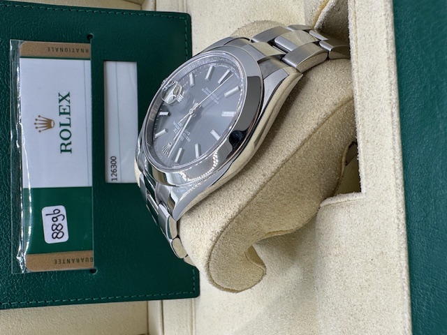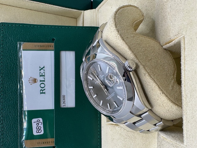 Rolex Datejust referenza 126300 con ghiera in acciaio Anno 2018 in condizioni di pari nuovo con elegantissimo quadrante Rhodium, praticamente introvabile in qualunque concessionario Rolex del mondo. Orologio leggendario di casa rolex che permette un uso sia sportivo che elegante allo stesso tempo, completo di scatola , garanzia originale,tag,più nostra garanzia 12 mesi.