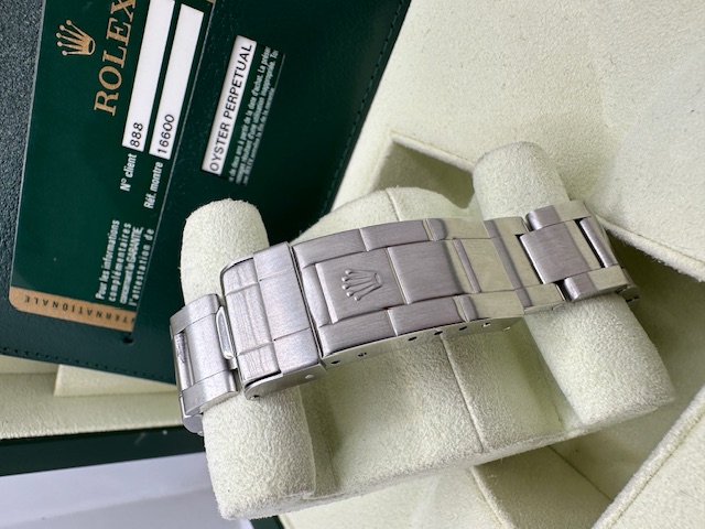 We offer for sale Rolex Seadeweller Reference 16600 Year 2007 Very Good Condition . Iconic Rolex watch, developed for divers and patented to reach a depth of 1000 metres, is in good aesthetic condition. Reference Out of production for years now, which makes it highly sought after by collectors and sure to be revalued in the future. It is sold complete with box (NO OUTER BOX), official Rolex guarantee plus our 12 month guarantee.