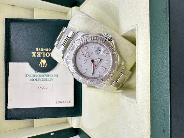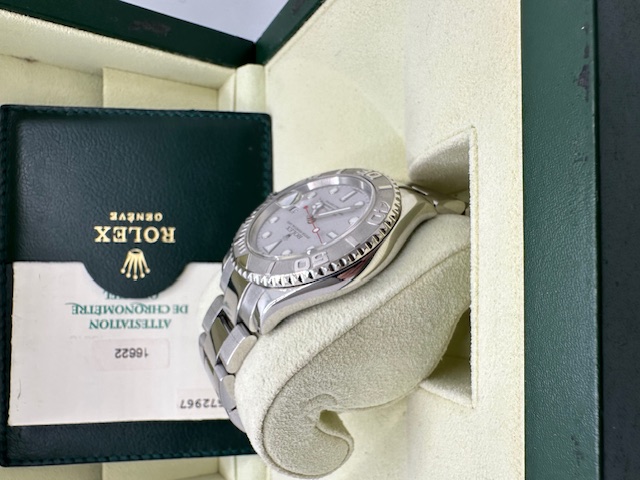 We offer for sale Rolex Yachtmaster Ref 16622 year 2001.Watch with rotating bezel in platinum, it is good condition condition, a reference that is now out of production.. It is sold complete with box ( NO OUTER BOX), Rolex Guarantee plus our 12-mounth guarantee